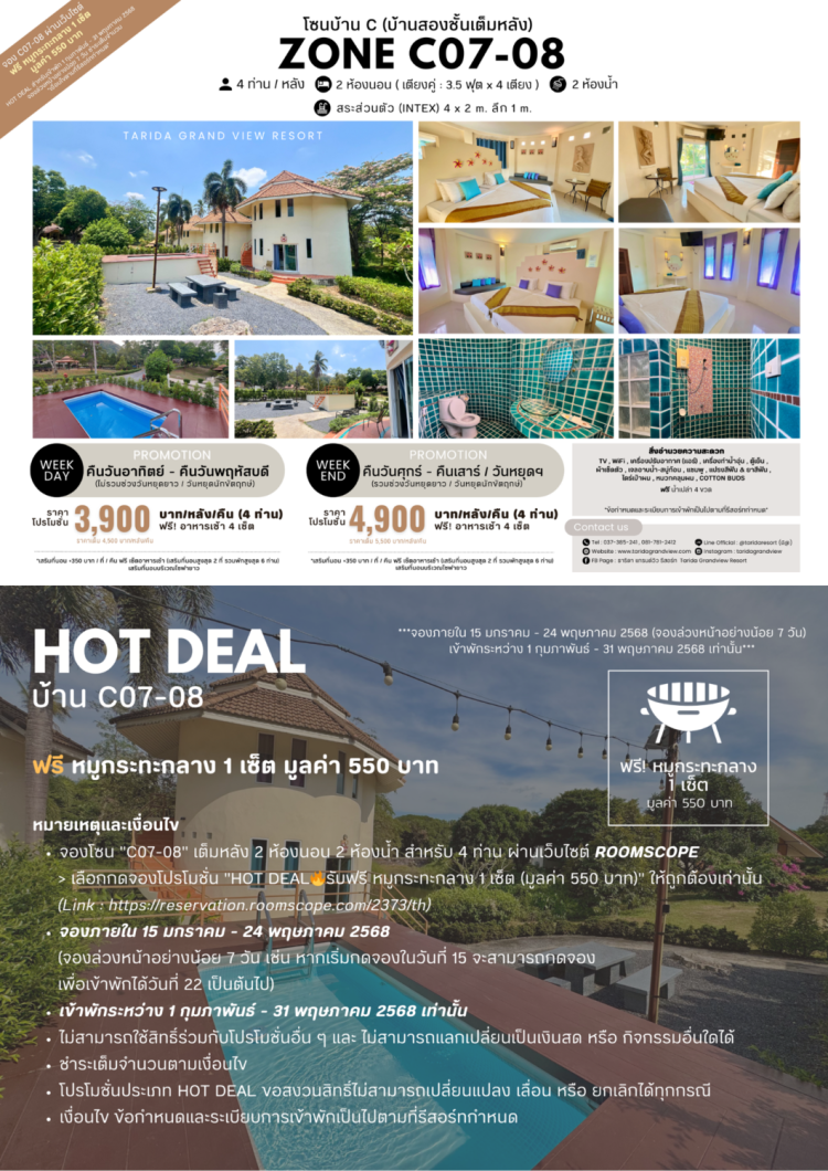 Tel. 037-385-241, 081-781-2412 | Line : @taridaresort (มี@) |